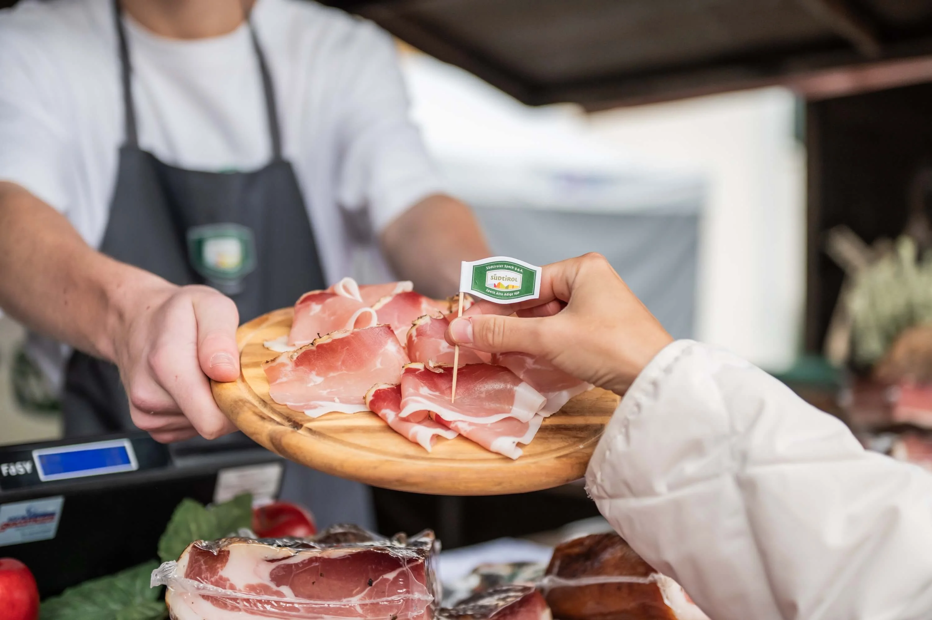 Leicht geräuchert und behutsam an frischer Bergluft gereift, ist der Südtiroler Speck g.g.A. fest in der Esskultur Südtirols verankert. Er zeichnet sich durch handwerkliche Herstellung und sorgfältig abgestimmte Gewürzmischungen aus, die von Generation zu Generation weitergegeben werden.