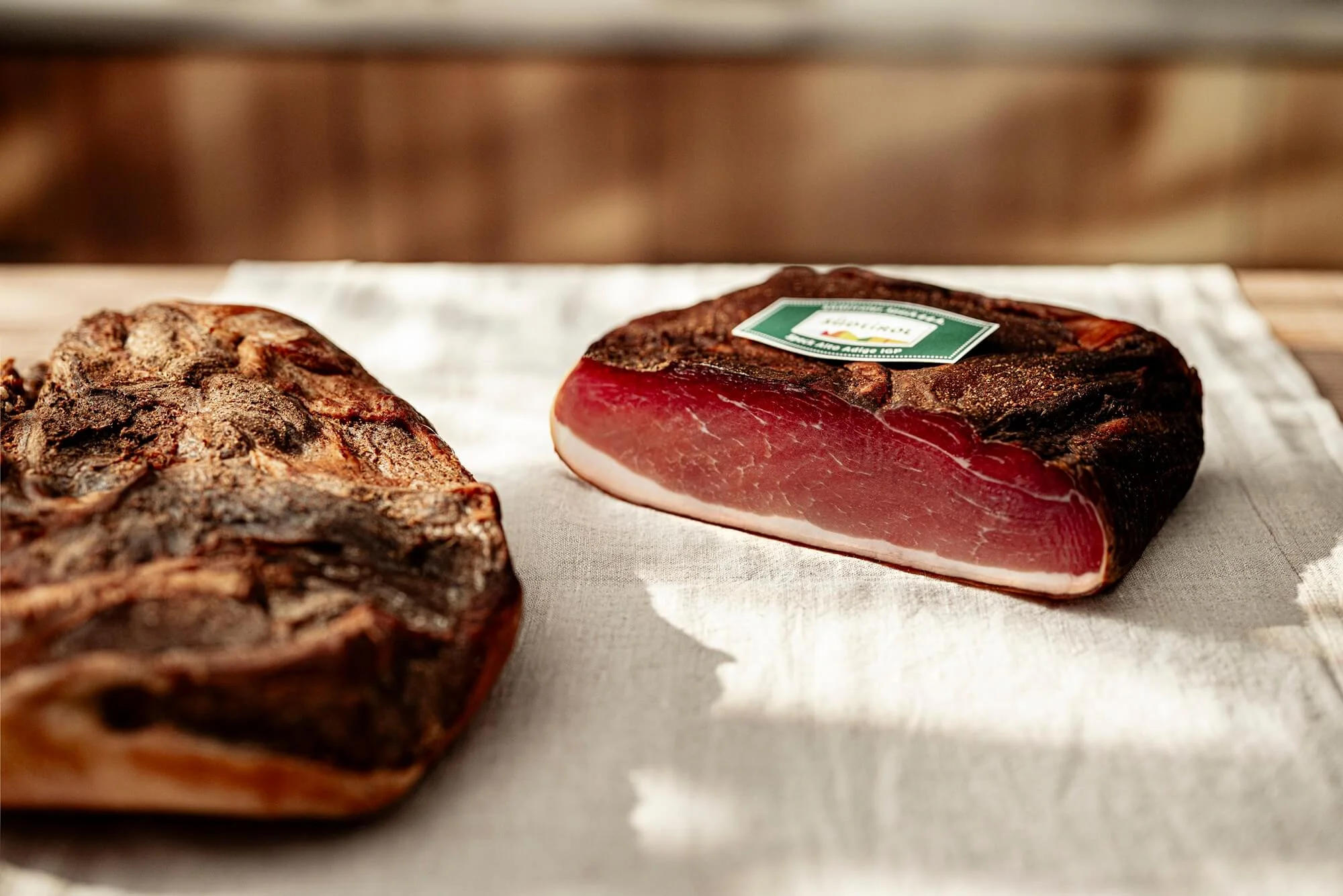 Nur nach strengen Vorgaben hergestellter Speck darf das Qualitätszeichen „Südtiroler Speck g.g.A.“ tragen. Aus der Verbindung zweier alter Konservierungsmethoden – dem Lufttrocknen aus dem Mittelmeerraum und dem sanften Räuchern aus Nordeuropa – entstand in Südtirol ein regionaltypisches Herstellungsverfahren.
