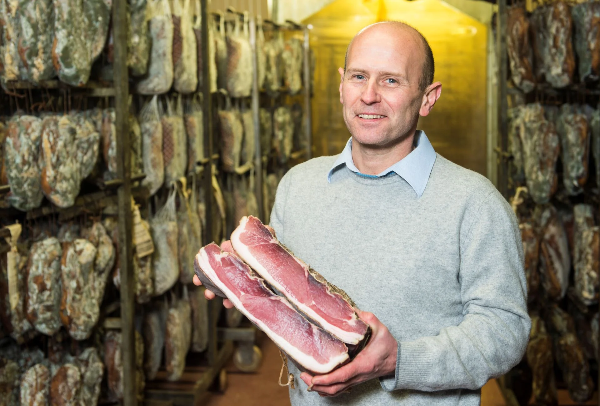Temperature and humidity can be precisely controlled in the climate-controlled maturing rooms - a decisive advantage over previous conditions, where quality was dependent on external influences. The mixture of spices, the composition of which varies from one business producer to another, ultimately gives the speck its individual flavour.